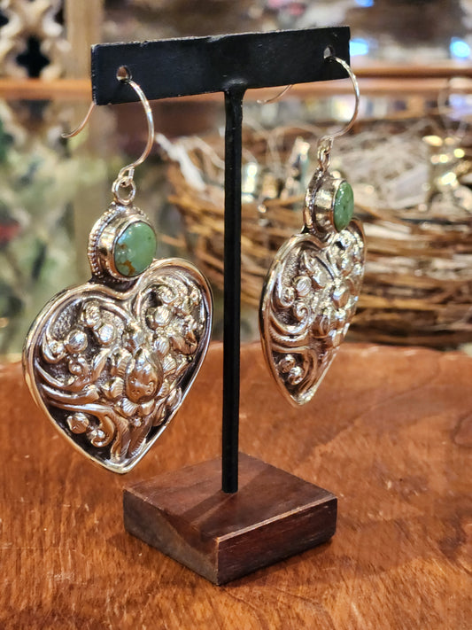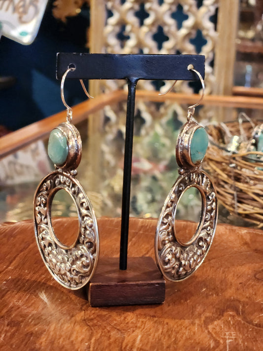 Ornate Metal Hoops with Turquoise Earrings - Multiple Styles