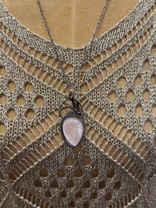 Dragonfly Gemstone Pendant Necklace - Rose Quartz