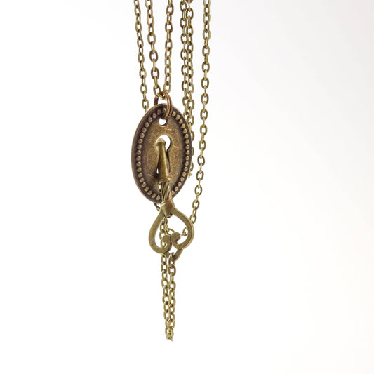 Key & Keyhole Necklace | Long Y Necklace | Bronze