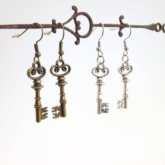 Skeleton Key Earrings | Lightweight Steampunk Keys - Antique Bronze