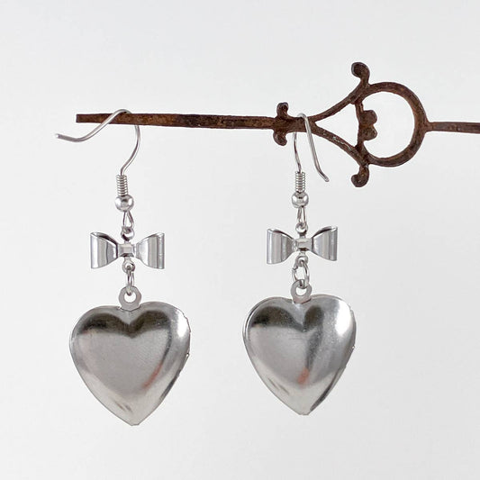 Heart Locket Earrings | Working Lockets with Bow Detail - Stainless Steel