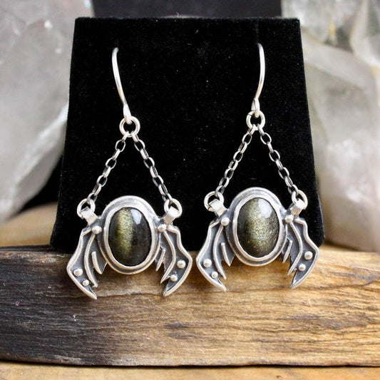 Winged Prophetess Earrings // Black Obsidian Sheen