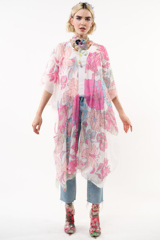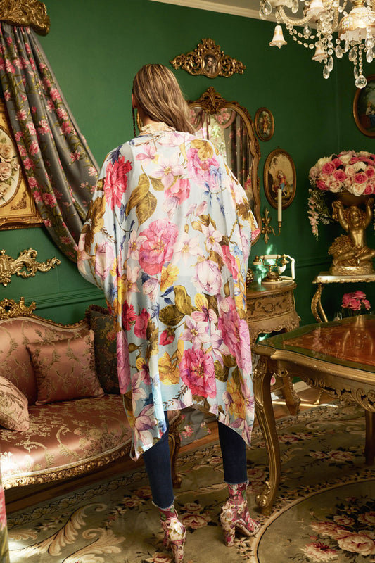 Roman Holiday Hand-Beaded Kimono - Sky Floral