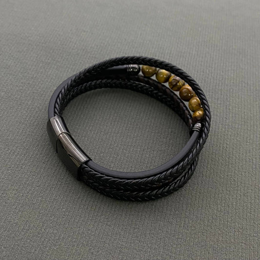 Men's Tiger Eye Stone Leather Double Layer Bracelet - MJ/BC