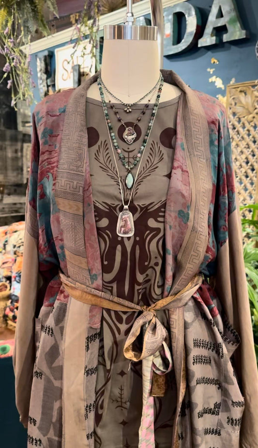 PLUS SIZE WASHED LAPEL DUSTER JACKET - TAUPE LEOPARD