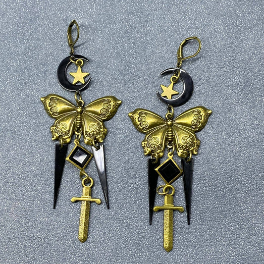 Gothic Style Bronze Butterfly & Sword Dangle Earrings