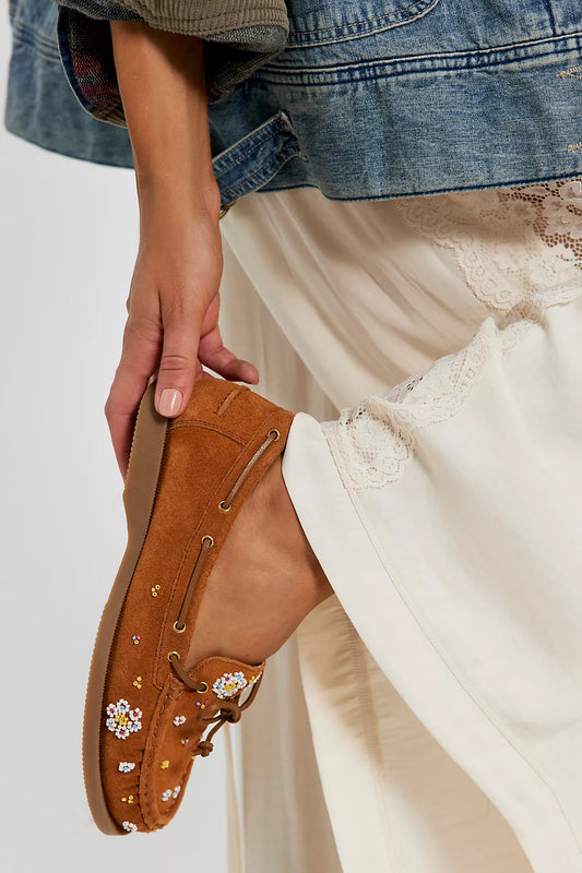 Sandy Seed Bead Boat Shoes - Vachetta Voyage Suede