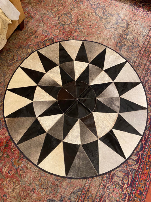 Round Patch Work Cowhide Rug
