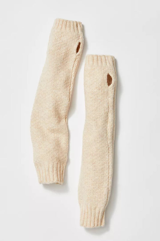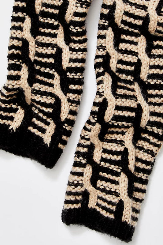 Mariella Cable Knit Arm Warmers - Black/Tan