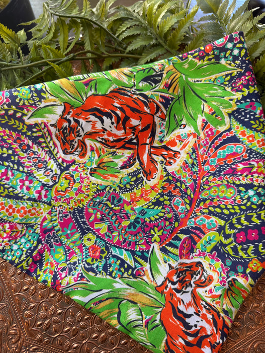 Tiger / Lime Green Leaves Scrunchie #SS17 (2)*
