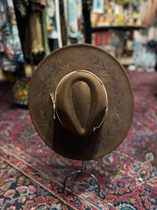 Burnt Floral Vines on NYMF Brown Marble Hat - Hannah King*