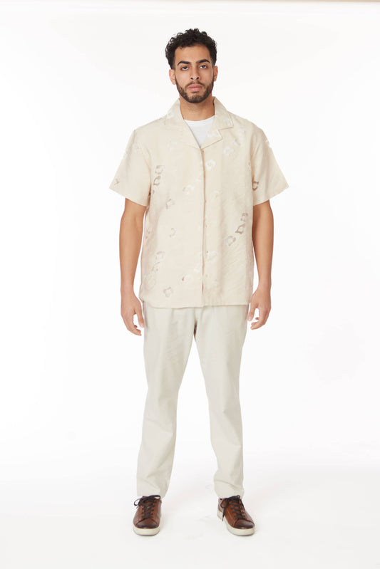 Textured Short Sleeve Men's Shirt - Ivory Floral