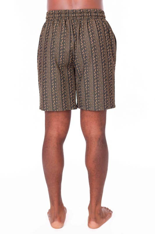 Men's Elastic Textured Shorts - Brown