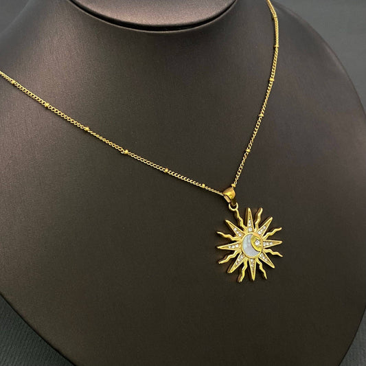 Sun Moon Star 18K Gold Plated SS Charm Necklace