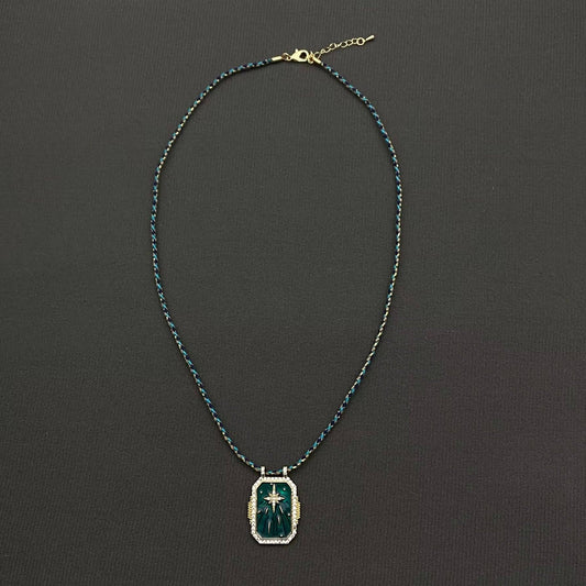 Enamel Rhinestone Star Square Cahrm Braided Rope Necklace