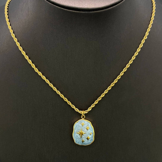 CZ Enamel Tarot Charm 18K Gold Plated S.Steel Necklace - FGS - Star Moon