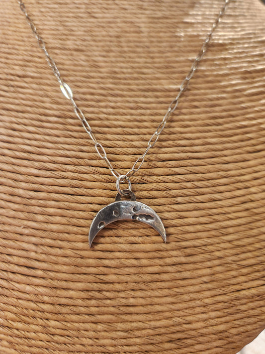 Stamped Vintage Metal & Labradorite Statement Pendant