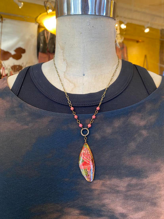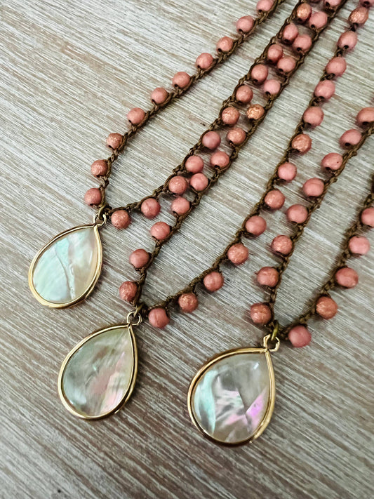 Mother Of Pearl Drop Necklace With Earthy Terracotta Crystal