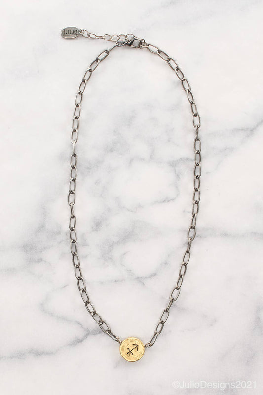 Hand Stamped Zodiac Necklace 2-Tone - Choose Sign