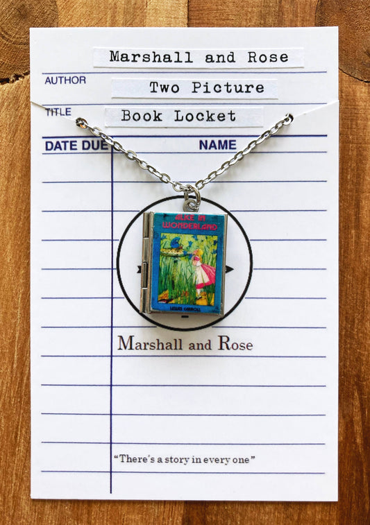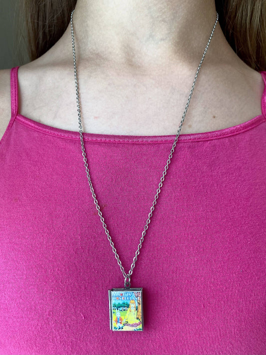 Book Locket Alice In Wonderland - Picnic with Rabbit - Stainless Steel