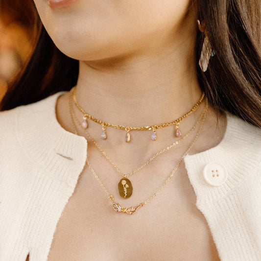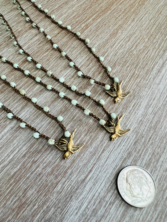 Split Tail Swallow Charm Necklace With Golden Mint Crystal