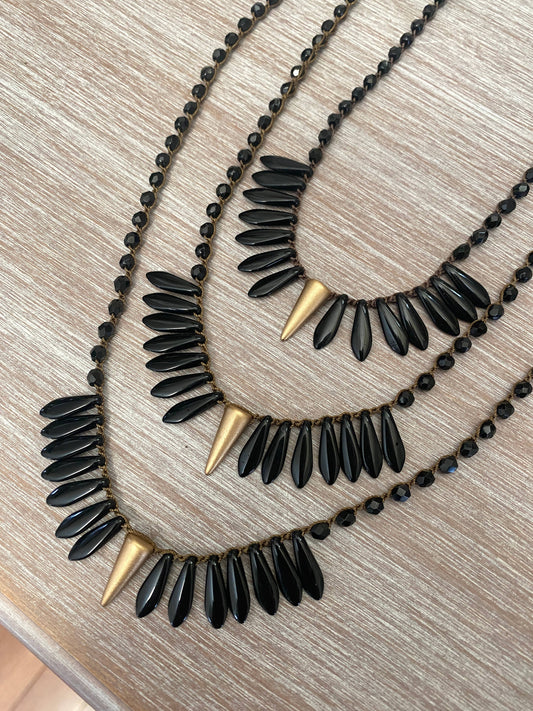 Thorn and Dagger Knotted Crystal Necklace In Black