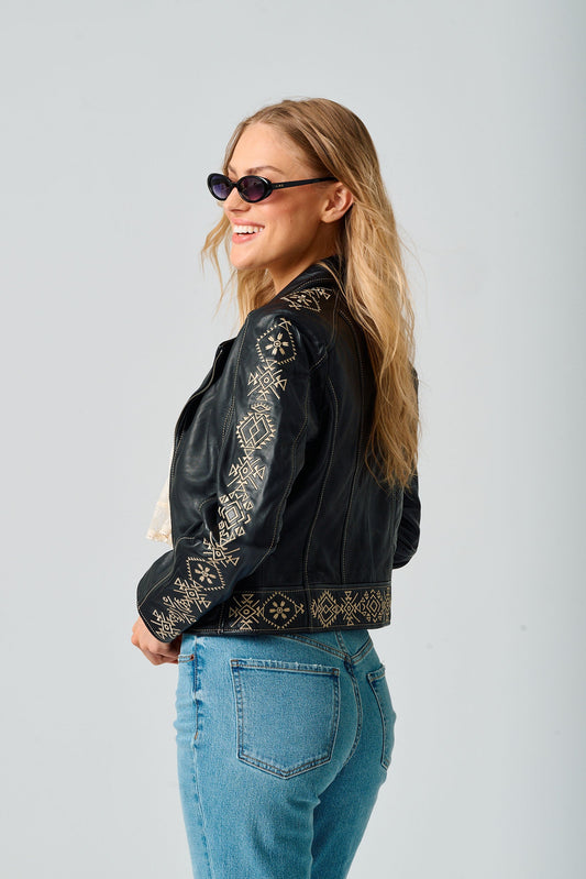 Women's Cora Rf Embroidered Front Zip Jacket - Black