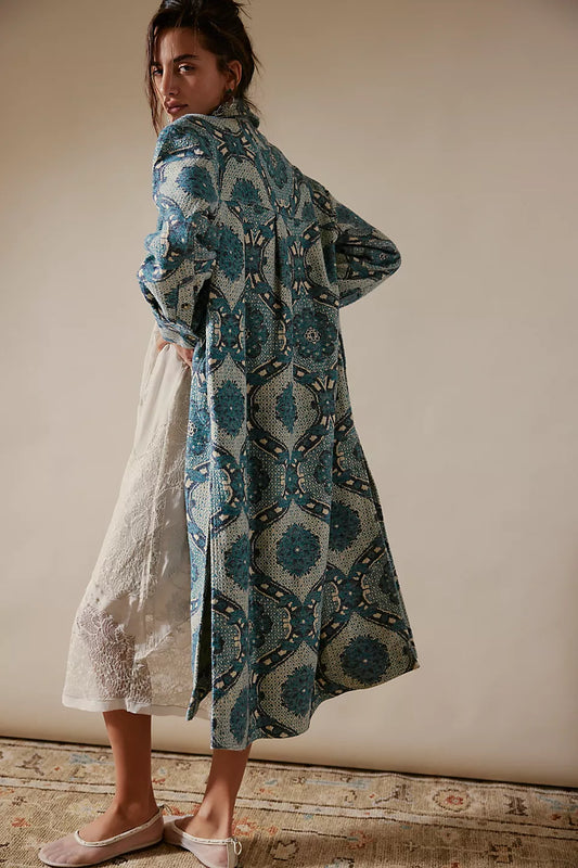 Brick Lane Jacquard Maxi Shirt Jacket - Blue Combo