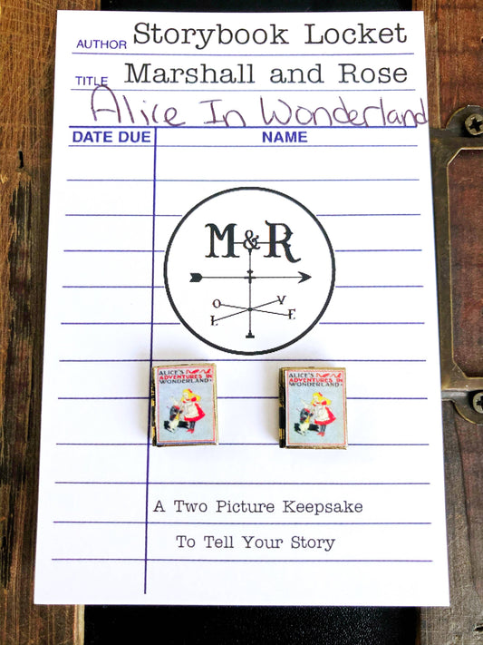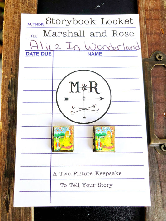 Post Earrings Book Locket Alice In Wonderland- Picnic
