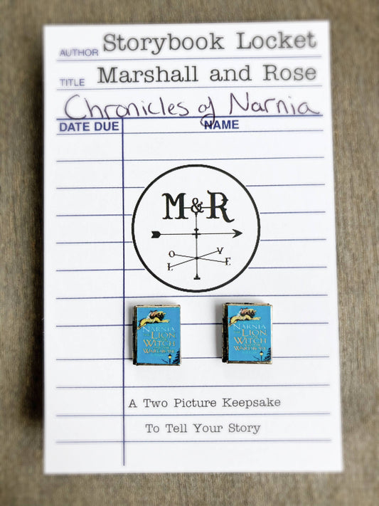 Post Earrings Book Locket Chronicles of Narnia- Blue