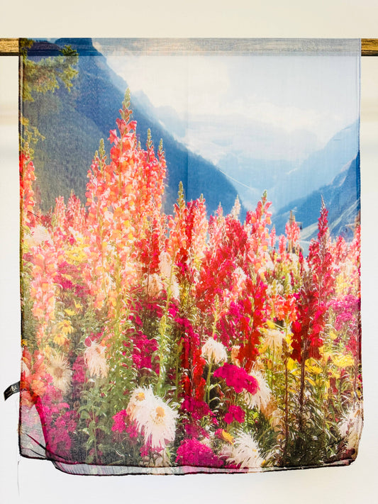 Feather Touch Scarf - Red, Blue Wildflowers