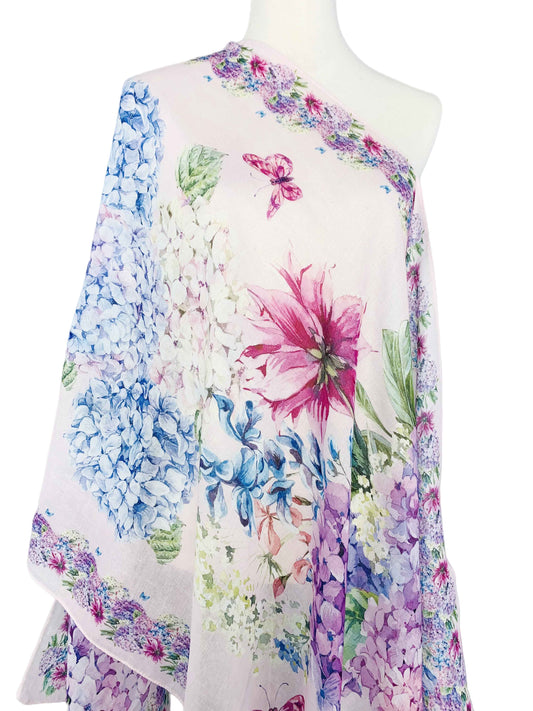 Pink-Multi Hydrangea & Butterfly Scarf