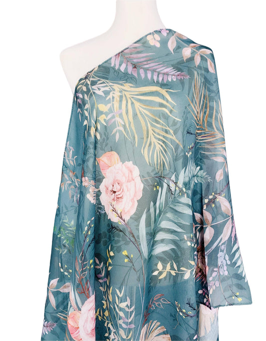 Teal-Pink Floral Scarf
