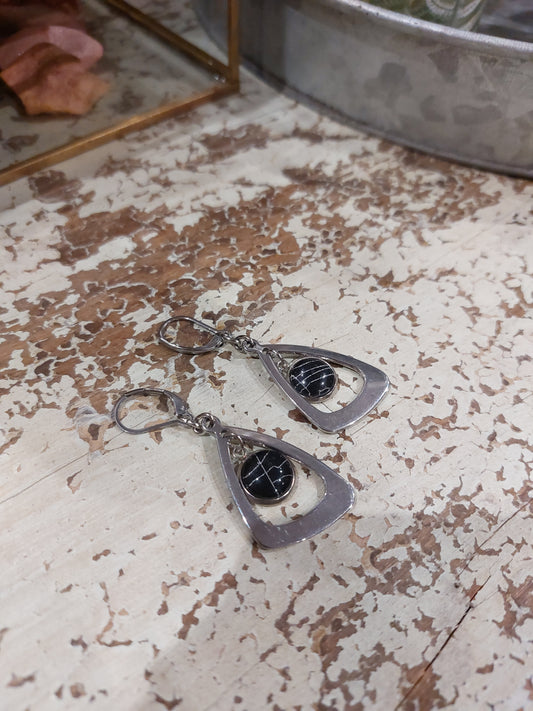 Real Spiderweb Silver Tone Abstract Triangle Earrings - A