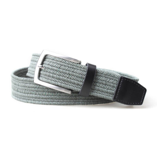Men's Solid 3.5CM Woven Fabric Stretch Belt w/ Leather Trims - Seamoss