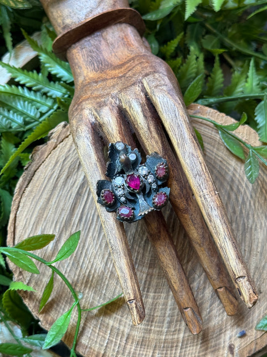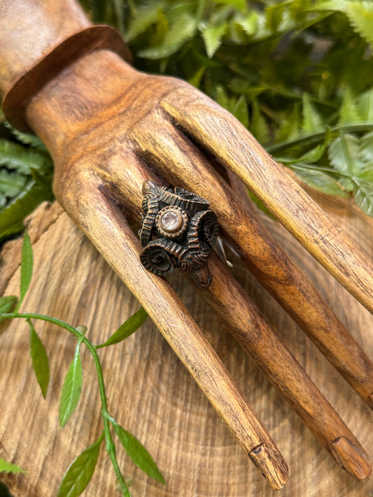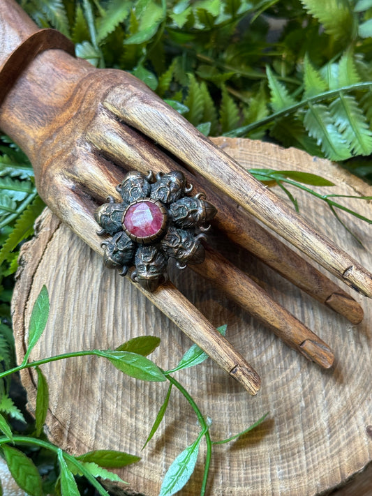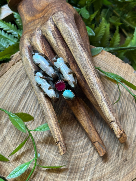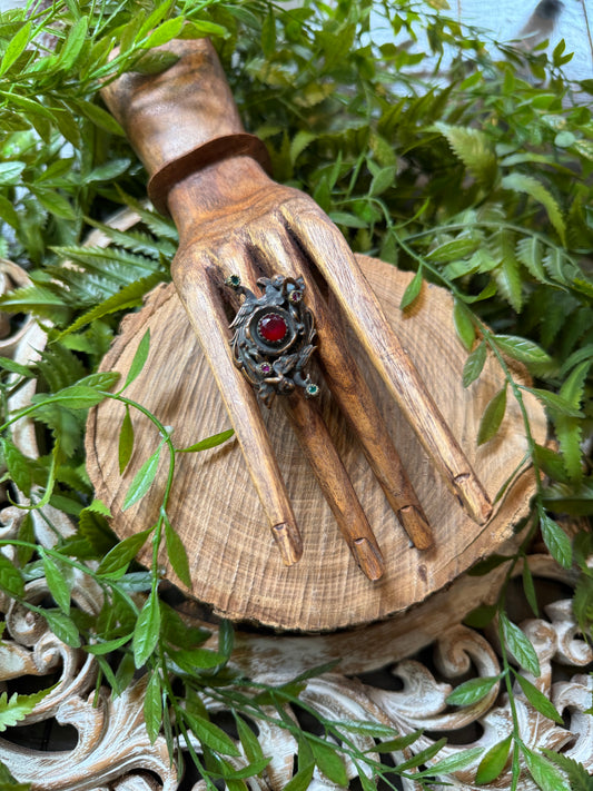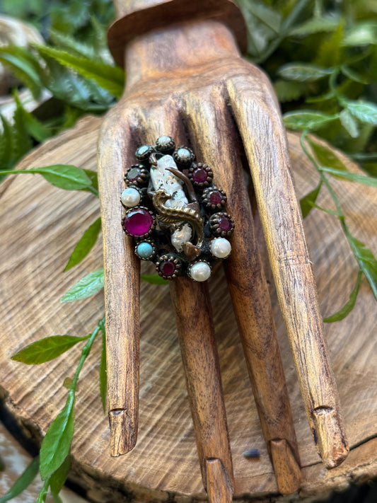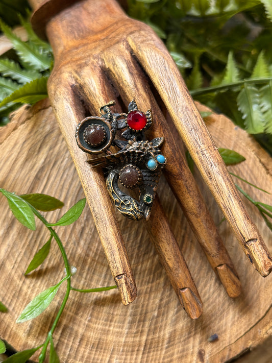 Winged Snake with Ruby, Turq, Emerald & Mocha Stone Ring