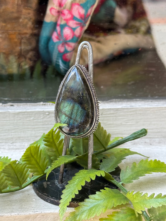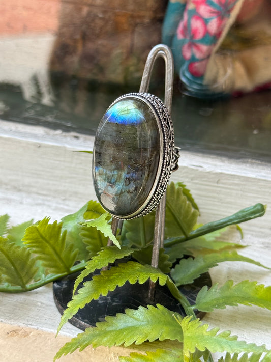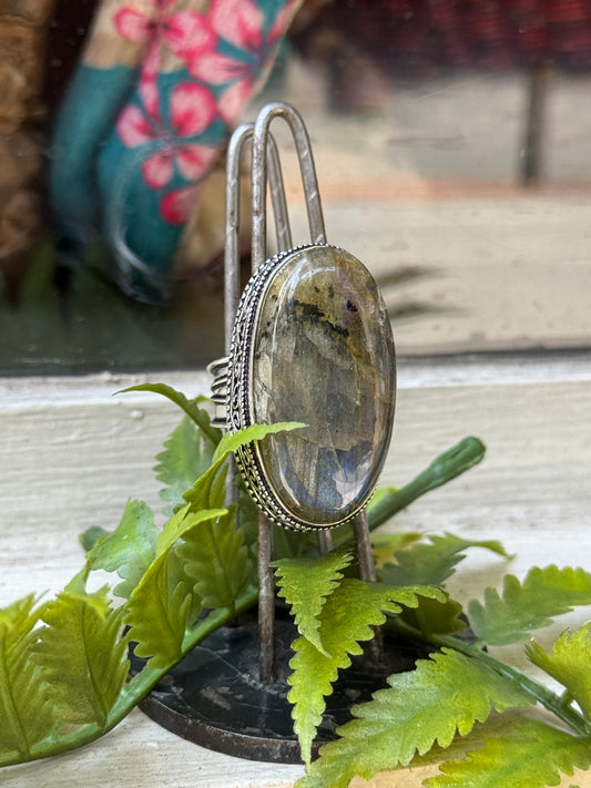 Rosetta Stone Labradorite Raw Stone Sterling Ring