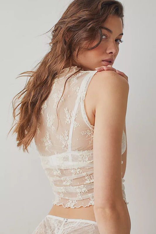 Cami with Lace Inset and Raw Edges - Natural