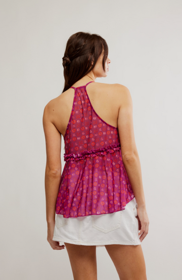 Soft Relaxed Tank With Delicate Floral Laced Hem - Pink