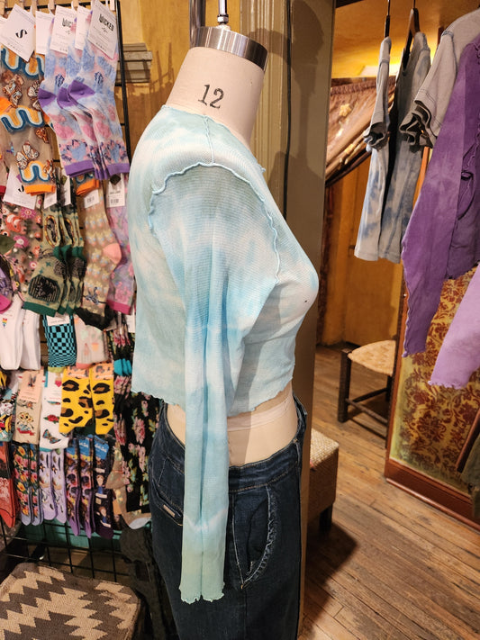 Hand Dyed 'Cutloose' Mesh Top - Blue