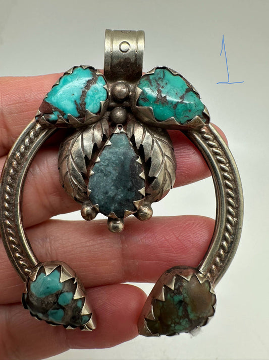 Squash blossom sterling silver necklace pendant ,handcrafted - natural turquoise
