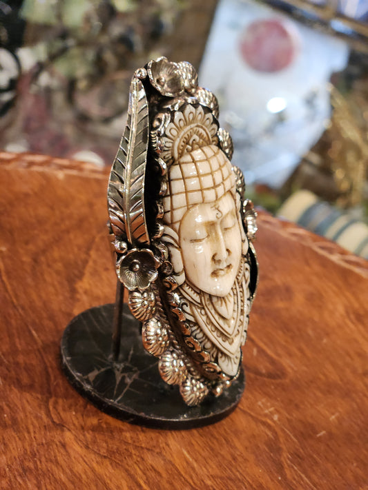 Buddha Carved Bone Pendant with Agate Beaded Chain