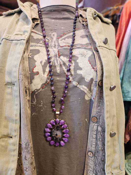Sugilite and Jasper Statement Pendant with Agate Beaded Necklace
