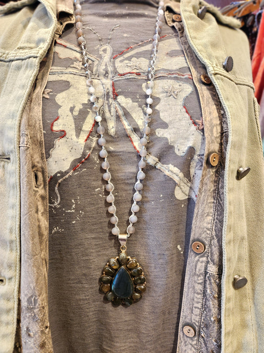 Labradorite and Turquoise Pendant with Mixed Beaded Necklace