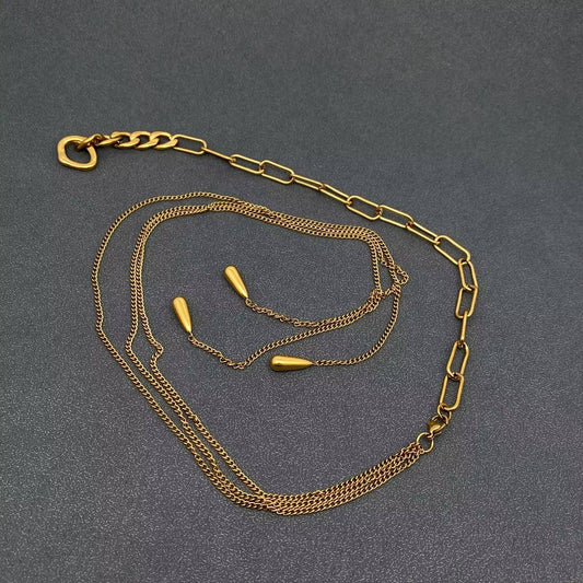 Teardrop Charm 18K Gold Plated SS Chain Lariat Necklace