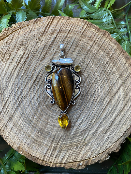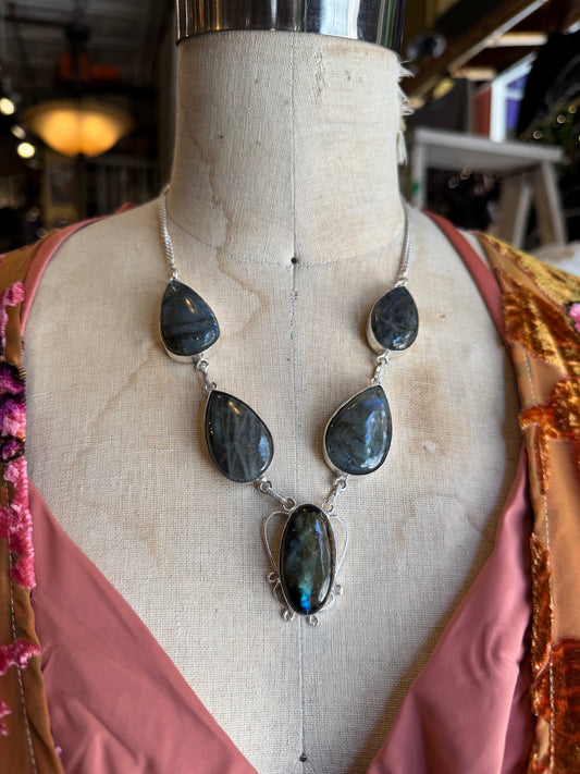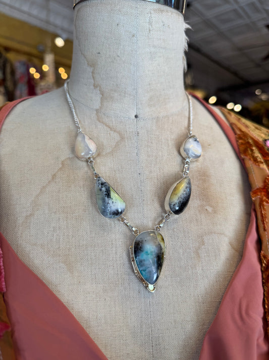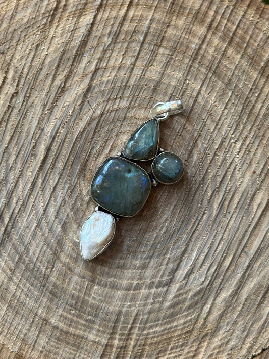 Labradorite Fluorite Black Rutilated Quartz Agate Pendant