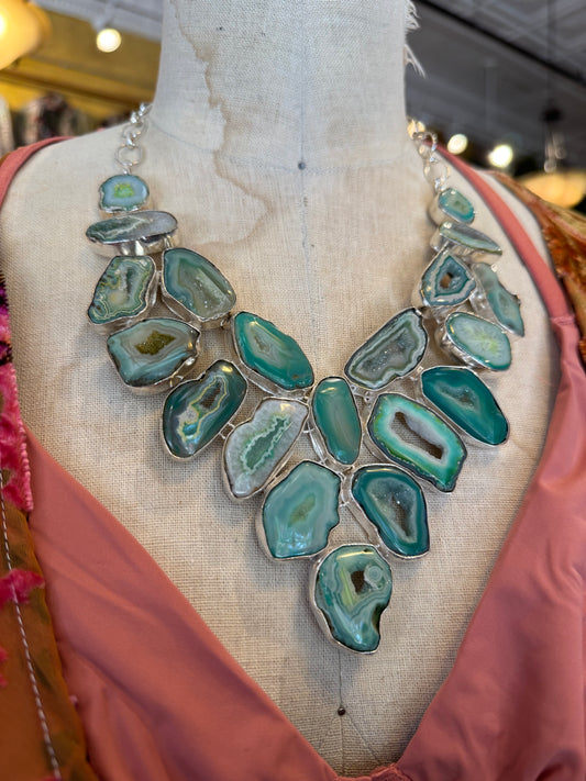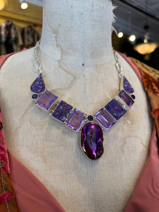 Aura Geode, Purple Jasper, Purple Faceted Glass Cluster Necklace