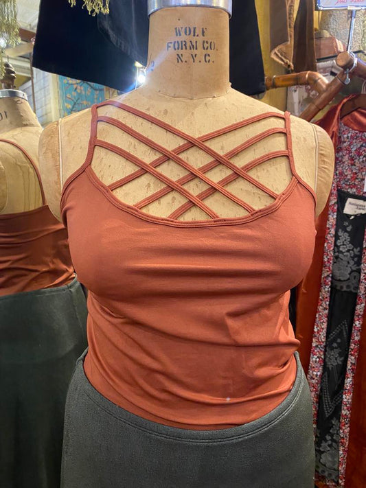 Plus Seamless Cross Front Cami - Dark Rust