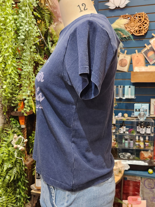 Plus Patchwork Multi Bodice Short Sleeve Top - Navy