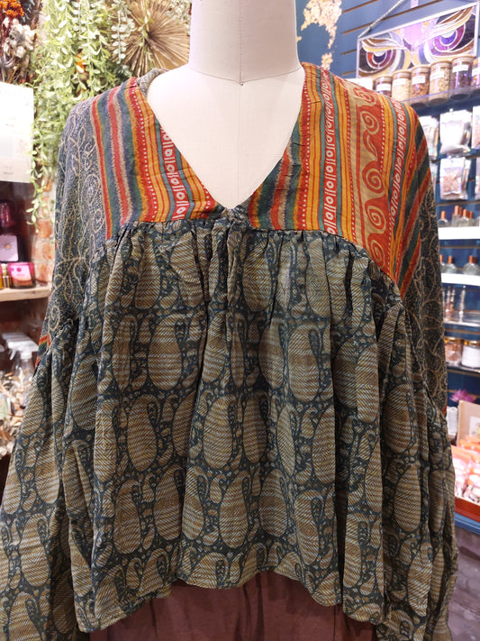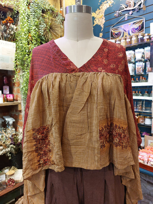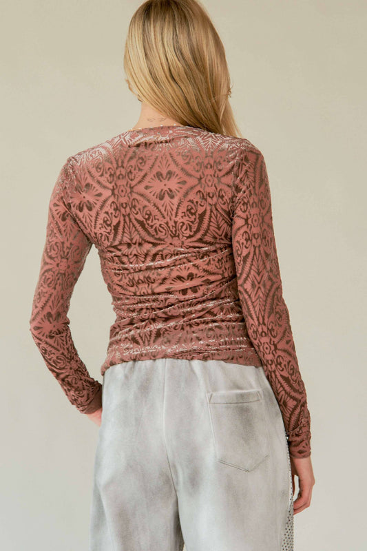 Plus Mesh Patterned Printed Long Sleeve - Brick & Mushroom